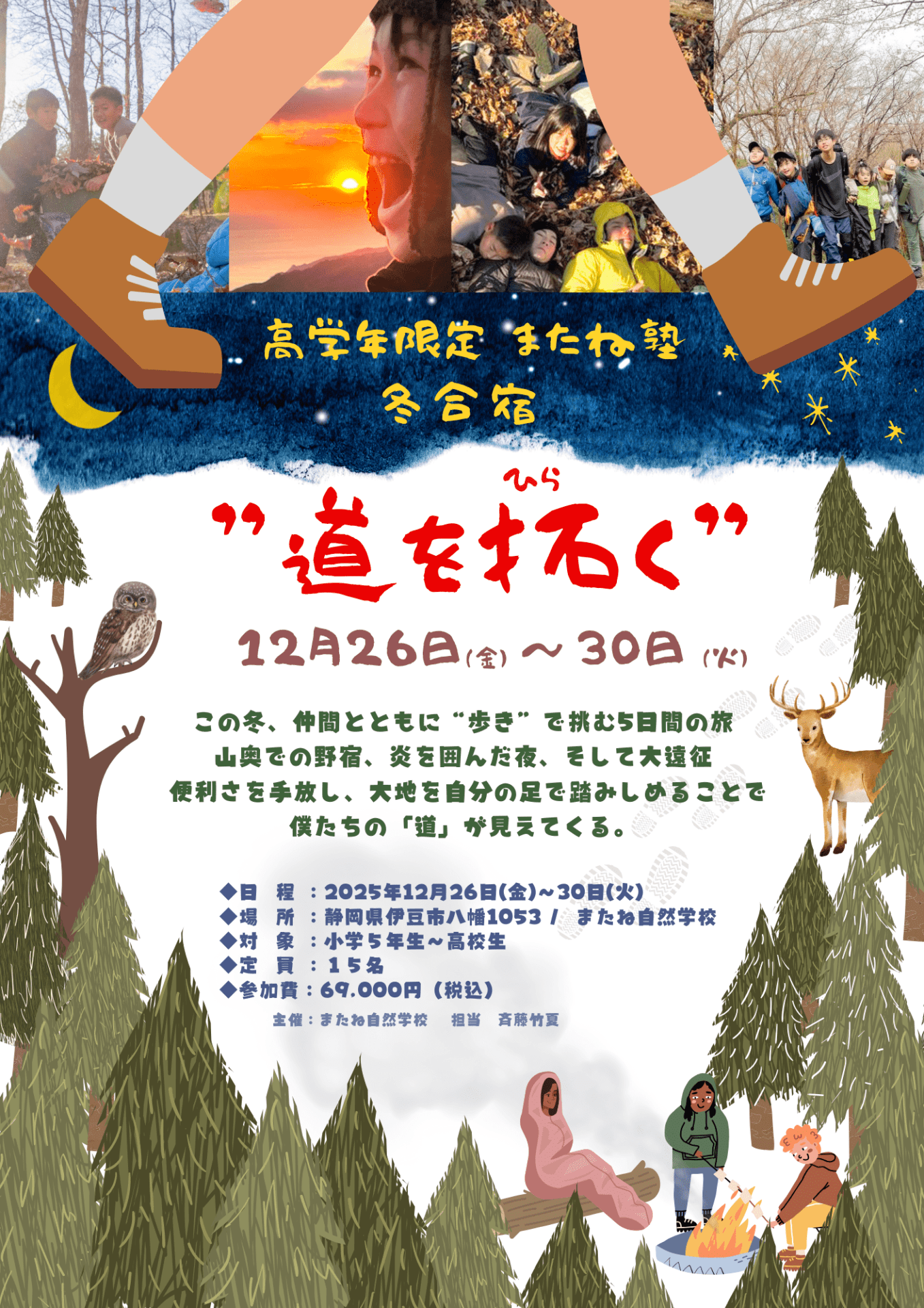 【12/26~12/30開催】またね自然学校主催!2025年またね塾 “道を拓く”